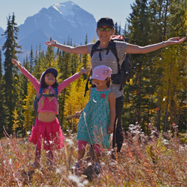 in views of Mount Temple and Victoria Glacier, then hike through larches to a stunning and peaceful lookout (few visitors venture beyond the gondola). Bring a tripod for family photos and allow time to dine at Whitehorn Bistro; the charcuterie platter and fondue are out of this world! Longer hikes from the top of the gondola include Pika Trail (2.5 kilometres) and Ptarmigan Valley Viewpoint (3.4 kilometres).