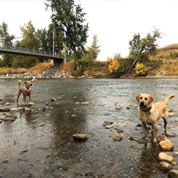 Dog highlights: Running free in Roxboro Off-Leash Dog Park: 3010 Roxboro Glen Road SW, swimming in the Elbow River, and finding abandoned tennis balls to play with in the forest beside the Stanley Park tennis courts.