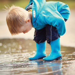 It’s a cloudy, rainy day and your little ones are restless. You look out the window, wishing you could send them outdoors to play. Well, what’s stopping you? Have you ever seen a child walk around a mud puddle? Absolutely not. Kids will go out of their way to step right in the middle of that puddle. They aren’t worried about getting wet or dirty; it’s adults who worry about silly things like that. Bundle them up, add slickers, rubber boots, and let your kids play outside in the rain.