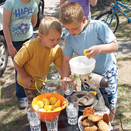 Real Lemonade - To make your own lemonade concentrate, bring equal parts lemon juice and sugar to a simmer in a small saucepan. (I usually do a cup of each.) Stir to dissolve the sugar, then cool and refrigerate. (If you want to flavor your lemonade, add fresh ginger, mint or thyme, then strain it out.) To make lemonade, add water or sparkling water to taste, and a handful of ice - you can make it by the glass or by the pitcher. (This concentrate also works well with lime juice, and makes a fine mojito or addition to a gin & tonic.)