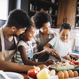Consider preparing your dinners ahead of time! Pick a morning or afternoon one day a week when the family can come together to plan and prep. We love these slow cooker freezer meal ideas from Blue Flame Kitchen! Freeze them for up to two months, then take them out to thaw and toss them in the slow cooker when you’re ready to eat.