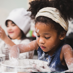 \n- For children past the tasting stage, put small amounts of shaving cream in a muffin tin and tint with food coloring. Allow finger painting on the tub walls.