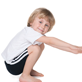 2. Flat-footed squat. Can your child do a flat-footed squat from a standing position and then stand up again? The flat-footed squat is considered a standard test of physical literacy by researchers and health practitioners. This movement indicates a blend of important qualities: flexibility, coordination and balance, not to mention strength. If your child has trouble keeping their heels flat on the ground while they descend into a squat all the way to the floor and stand up again, or if they lose balance and fall over in the process, your child needs to work on balance as well as flexibility, coordination and strength in key muscle groups in the legs and core.